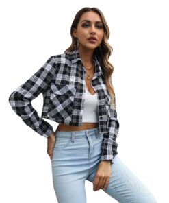 Plaid Zebra Print Pocket Long Sleeve Shirt Cropped Top Cardigan Thin Outerwear
