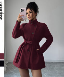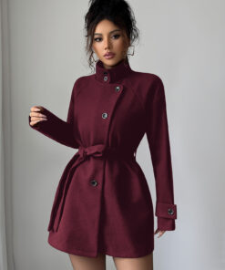 Women’s Solid Color Casual Button Long Sleeved Windbreaker Jacket